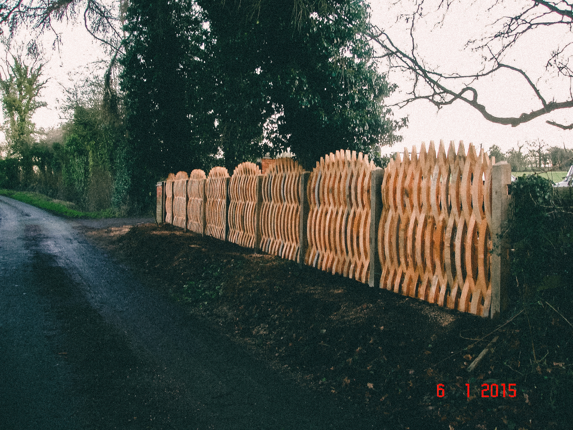 This is a model of a proposed oblique woven fence. To date, yet to be erected. It shows both open and closed weave styles.